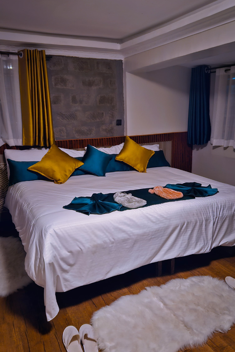 The space, the warm, brushed cotton tailor-made white beddings and duvets, for our extra-large high quality mattress beds.
